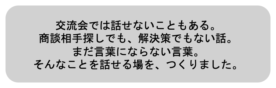 理屈・結論・評価・アドバイスではなく、他者の経験や視点にじっと耳を傾け、自分の心の中にある本当の想いを発見すし、新たな気づきを得る場です。